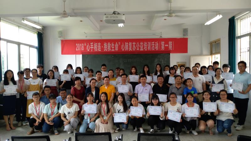 5月13日上午,由宁德师范学院、九三学社宁德市委会联合主办,九三学社宁德师范学院支社、市医院支社和校统战部、学生工作部(处)联合承办的2018“心手相连·挽救生命”心肺复苏公益培训活动(第一期)在我校继续教育学院203教室正式启动。本次活动也是心理健康月系列活动之一。宁德市政协副主席、九三学社宁德市委会主委黄家盛,我校党委委员、副院长颜桂炀出席开班式并讲话。学生工作部(处)部(处)长毛茂峰、继续教育学院副院长彭彪、九三学社宁德市医院支社主委、主任医师及医疗专家、辅导员代表、心理自助中心成员、各班心理委员约50人参加了此次培训活动。
