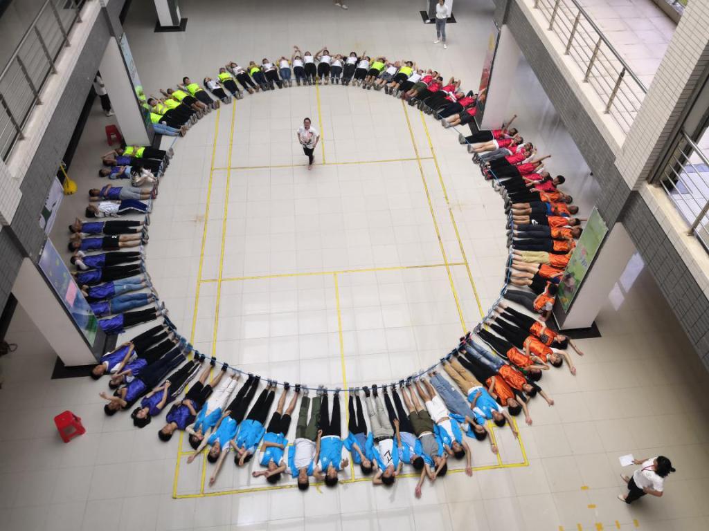 本次素质拓展活动分“破冰融入——沟通与合作——分享总结”三大环节。欧老师先介绍本次团体辅导的目的与意义,通过“异掌同声”和“抓乌龟”的热身小游戏让整个团队在愉快的气氛中迅速融入集体。又通过报数分组、滚雪球、选队长、取队名、唱队歌等一系列活动完成团队组建。在沟通与合作环节,欧老师通过人椅,超级链接、激情节拍、动力圈四个游戏,引导队员们齐心协力,团结友爱,整个活动过程充满了欢声笑语,处处可以感受到团队合作的力量。分享总结环节,每位参与者分享心得,并在成长树上写下自己的愿望和祝福,活动最后,全体成员们合影留念,历时2个多小时的素质拓展活动,圆满结束。