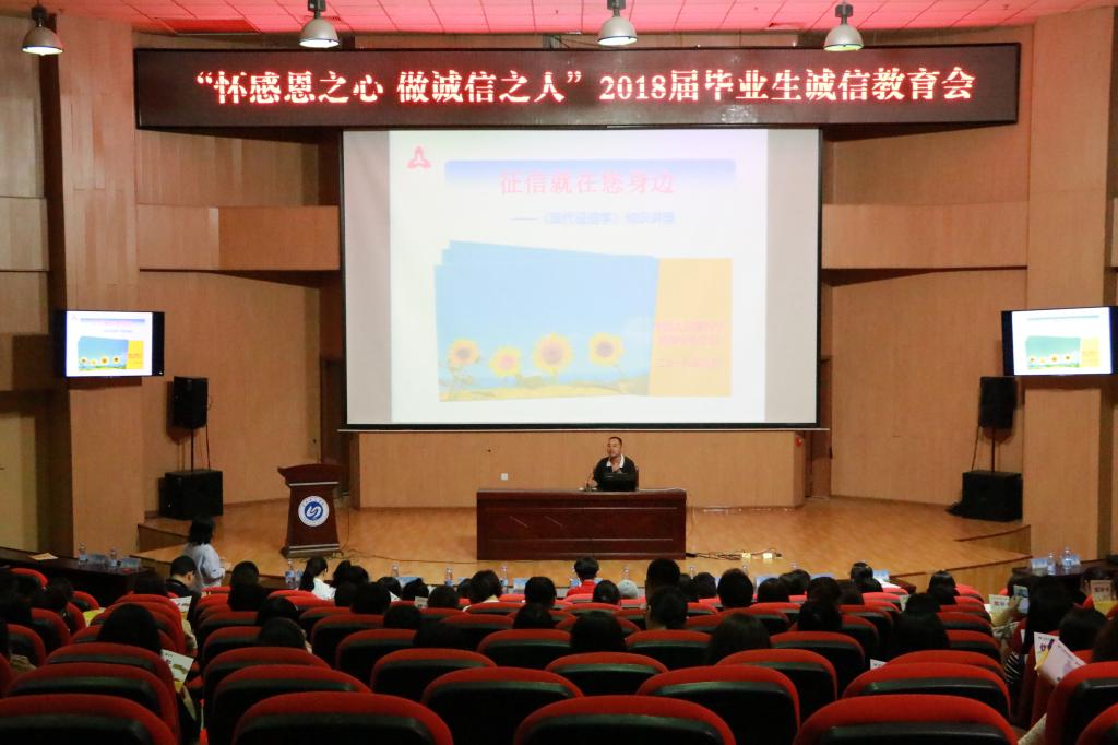 为进一步普及征信知识,宣传国家助学贷款政策,强化贷款学生的诚信意识,营造诚实守信的校园文化氛围,6月6日我校在东侨校区图书馆报告厅召开“怀感恩之心 做诚信之人”毕业生诚信教育会。学生工作部(处)副部(处)长龚劲丹、学生工作部(处)欧嘉烟、王中妍老师、2018届300余名生源地信用助学贷款学生及勤工助学服务中心工作人员参加会议。会议邀请了中国人民银行宁德中心支行征信管理科孙江华科长、陈祥云经理、宁德农商银行业务部总经理黄婉秋和宁德农商银行支行行长余苗、傅锦等9位金融机构人员。