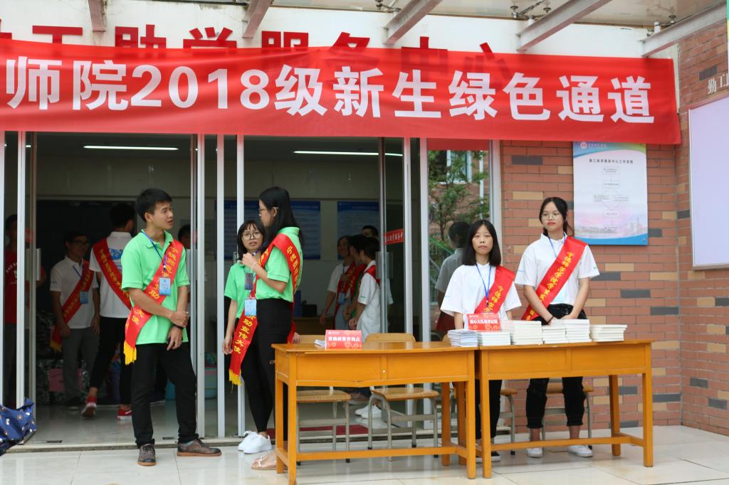 我校设立“新生入学绿色通道”服务点,开展2018级特困新生帮扶百人计划“八个ー工程”即:每人一份价值约500元的生活用品爱心包,一份国家助学金,一张100元爱心餐券,一份校内勤工助学岗位,一本励志成才书,一份城镇居民健康医疗保险,一套军训服装,推荐一名优秀家庭经济困难学生党员与家庭经济困难新生结对帮扶,帮助100位家庭经济特别困难的新生解决学习和生活问题,该计划目前已持续开展七年,受助学生593人。
