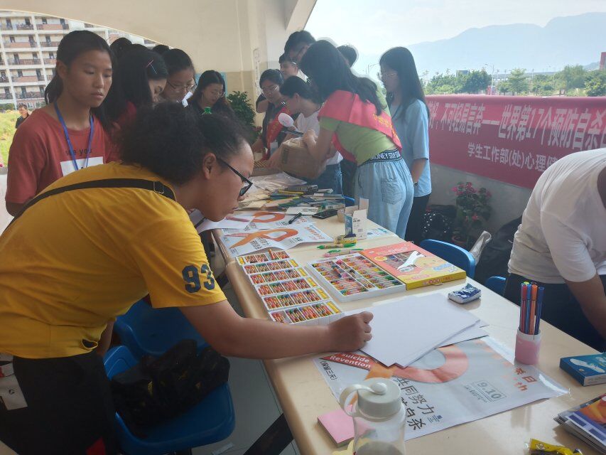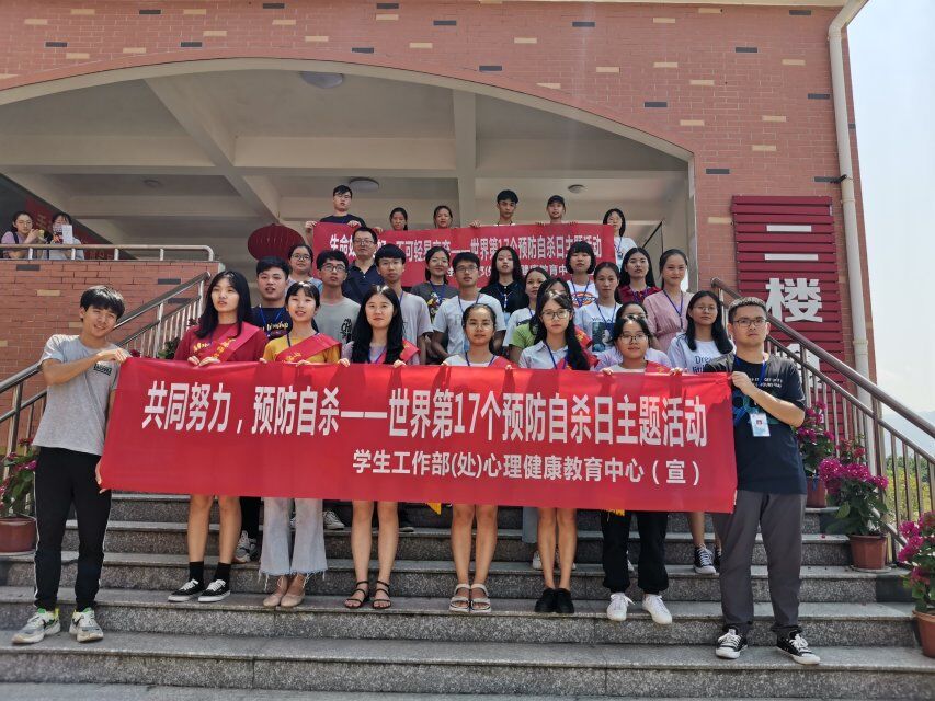 2019年9月10日是第十七个世界预防自杀日,由学生工作部(处)心理健康教育中心举办“共同努力,预防自杀”的主题宣传活动。本次活动分为横幅签字、问卷调查、爱心网络绘画、漂流瓶心互动、走向心理咨询师等方式,通过系列活动提高师生对预防自杀的关注度,引导同学们及时消除烦恼,增强对生活的自信心。当天晚上心理健康教育中心程彦华老师在讲堂群203为心理委员举办了题为《自杀,生命可能性的失去》预防自杀与危机干预讲座,通过讲座呼吁同学们珍爱生命、在实际生活中传播珍爱生命理念,普及宣传预防自杀知识,为预防自杀共同努力。