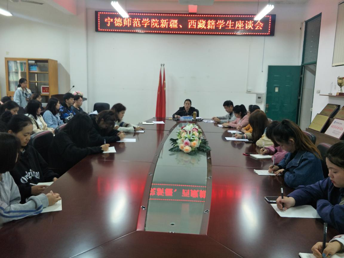 为进一步做好我校新疆、西藏籍学生教育、培养和帮扶工作,促进民族文化交流,增强学生的爱国情怀和民族自豪感,11月25日下午,副校长陈旺玉在求真楼经管学院BA105会议室组织召开了疆藏籍学生座谈会。