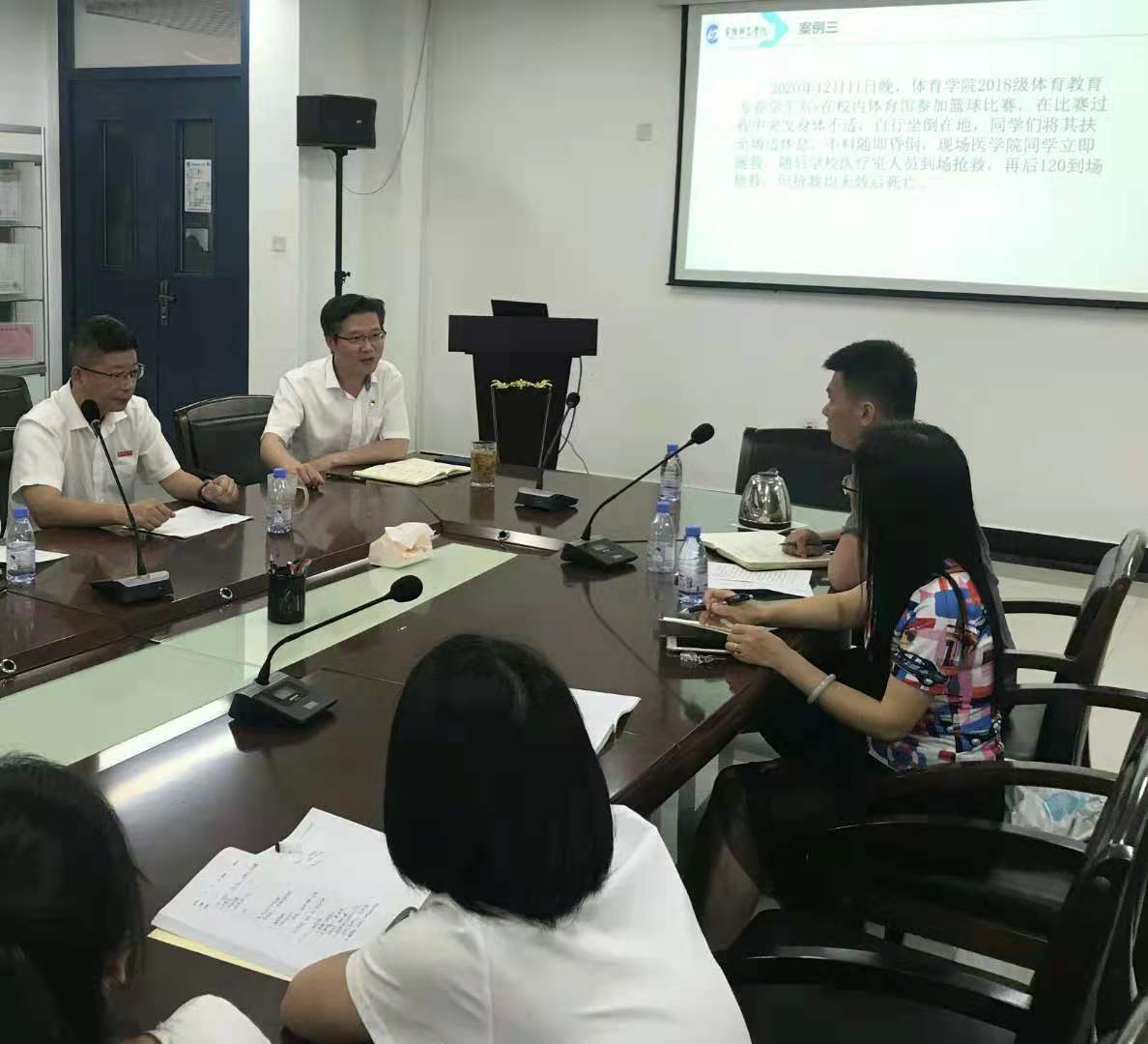 会上,教育与艺术学院、信息与机电工程学院及体育学院三位政工干部结合具体工作实例,分别总结他们在案例处置过程中的经验和存在的不足,小组其他成员围绕以上案例在“如何应对”、“具体工作流程”等方面进行交流,一方面结合各自工作经验提出了新的建议,另一方面对处置过程中的棘手问题进行剖析,就“如何找到最佳解决方案”积极探讨。每一个案例讨论结束后,组长用简洁明了的话语,对同志们的研讨建议予以总结,进一步完善案例处置流程,帮助辅导员明确突发事件的应急处置办法、途径。