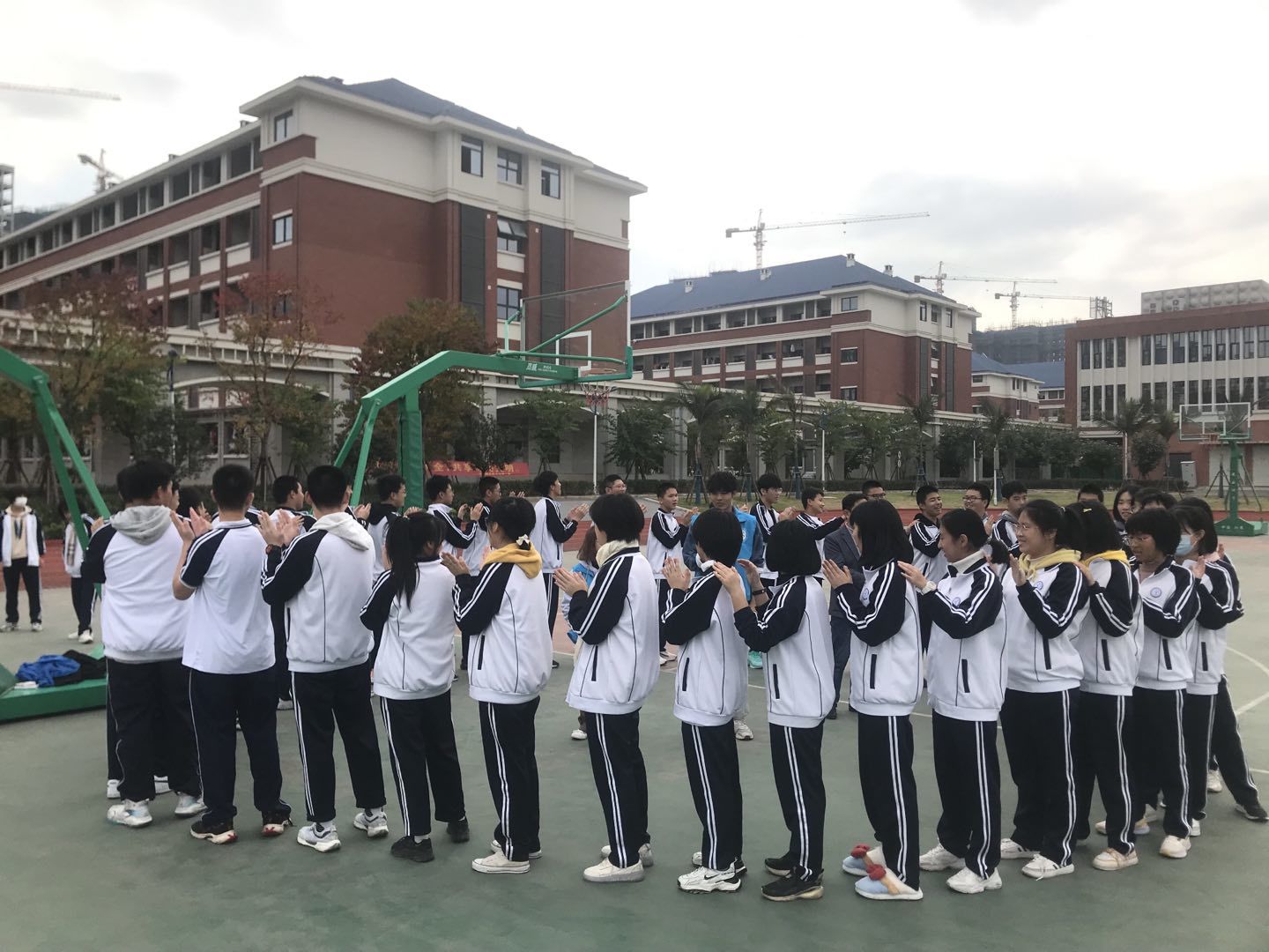 多元素质拓展活动在宁德衡水育才中学操场上如火如荼举办,异掌同声、班级口号大比拼、爱心传球、一圈到底、动力圈、激情节拍,一个个精心设计的团队拓展活动,精彩呈现,考验着师生身体灵活性和动作协调性,更考验的是每个班同学的凝聚力!一圈到底,呼啦圈仿佛被赋予了魔力,从一个个身轻如燕的同学们之间传递下去。激情节拍将游戏的氛围推到高潮,互助按摩操更鼓舞了大家的情绪。动力绳游戏给师生以震撼和力量!每位同学就像一只只蚂蚁蕴含着巨大的力量和潜能。