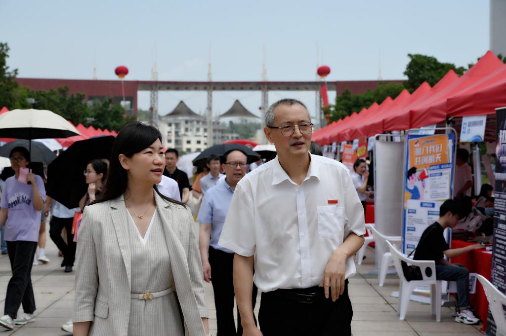 陈怡等人深入会场与招聘单位代表和毕业生亲切交谈,了解毕业生就业情况、企业人才需求状况等情况,勉励毕业生客观看待个人条件和社会需求,从实际出发选择职业和工作岗位,以青春奋斗创造精彩人生。