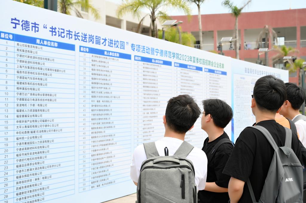 为深入贯彻党中央、国务院关于高校毕业生就业工作决策部署,全力促进毕业生高质量充分就业,5月18日,我校与宁德市人力资源和社会保障局联合主办的宁德“书记市长送岗留才进校园”专项活动暨宁德师范学院2023年夏季校园招聘会在我校东侨校区求索大道举行。