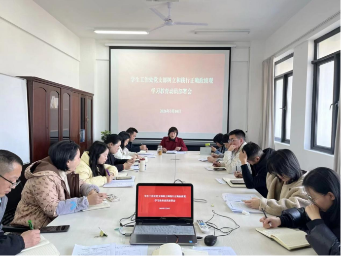 会议传达学习了习近平总书记关于树立和践行正确政绩观学习教育的重要讲话和重要指示精神,全面落实中央党的建设工作领导小组会议、省委常委会会议暨省委党的建设工作领导小组会议、2026年学校党的建设工作领导小组会议暨树立和践行正确政绩观学习教育动员部署会、机关党委动员部署会等会议精神,要求支部党员紧密结合学生教育管理工作实际抓好落实。